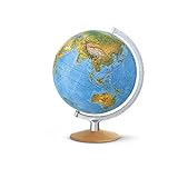 DPI 3017 Doppelbild-Leuchtglobus: DPI3017, Phys./polit. Kartografie, 30 cm Durchm.,Holzfuß buche natur, Metallmeridian silberfarben, Kabel integriert By Rar